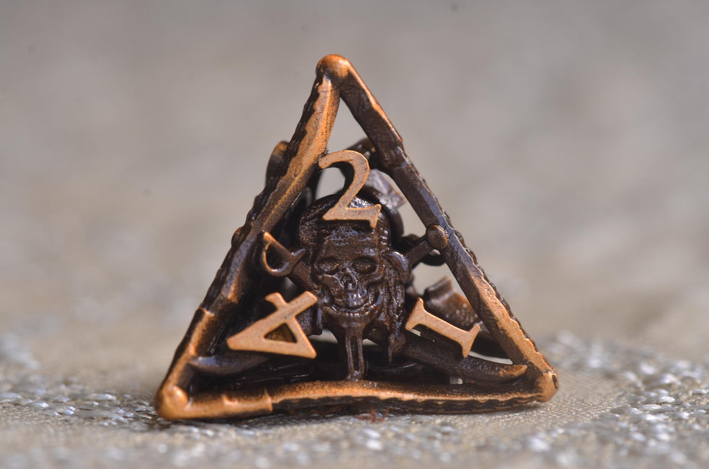 Set sail on an adventure with our Pirate-Themed Hollow Metal Dice 🎲. Each die in this set features intricate pirate skull motifs and cutlass-shaped edges, combining craftsmanship and pirate lore into a striking and unique design.